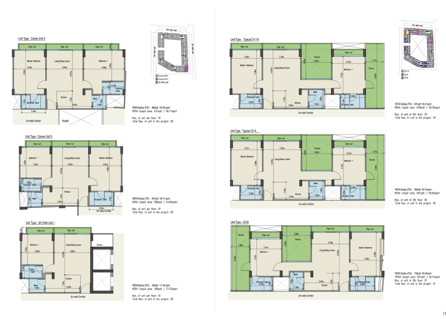 - Open terrace to be treated with suitable waterproofing and finished with china mosaic flooring for heat reflection.